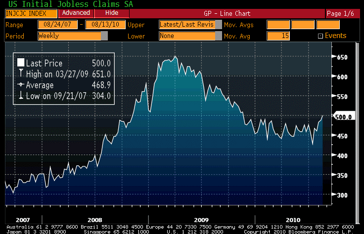 And yes, August is almost half over but we are setting up all the mischief for the fall. Today the new EU ambassador to the United States said he will be speaking for Britain on foreign and security policy in America (link). And Ireland and Greece are back in the news as well (link). Europe is vulnerable to a U.S. slowdown; the impressive-sounding but de facto flimsy bet by the EU not so many weeks ago to save Greece was a measure whose best chance of success was if they happened to get lucky and nail the bottom of the economic cycle so that investors could choose to believe the fiction without much risk. It increasingly looks like that is not the case. As Terrell Owens has proven over and over again, teamwork is easiest when the team is winning. When the crowd begins to boo…it’s every man for himself.