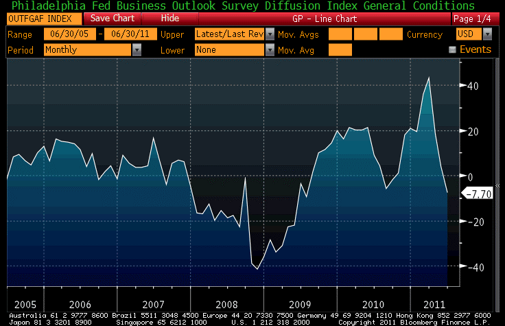 In the middle of this maelstrom, the Federal Reserve is meeting tomorrow and will make an announcement in the afternoon that will presumably not stray far from the expected text. The FOMC will note weakening data, which it will categorize as “likely temporary,” and will somehow acknowledge that QE2 officially ends this month. They are not likely to make important changes to the wording, or to their approach, at this meeting, because the Committee will want to see how the end of quantitative easing affects markets before taking another step. After the statement, Bernanke steps into the klieg lights for his close-up, with equal probabilities of him saying something really dumb or nothing useful at all.