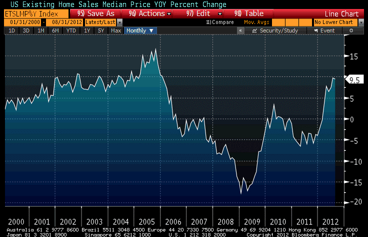 So don’t look now, but we’re in the midst of a home price rally. This is remarkable given the difficulty, still, of securing a home mortgage compared to the crazy days of the early ‘Aughts. Yes, perhaps the crazy credit terms followed the bubble’s inflation, rather than preceding and causing it. But if that’s true, then we’d have to lay the blame for the bubble more directly on the central bank’s doorstep.