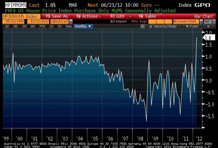 However, on the other side the FHFA Home Price Index showed its biggest leap in at least a couple of decades. Again, one point does not a trend make, but the odds that existing home prices are actually rising – at least for the homes that are changing hands – just went up again.
